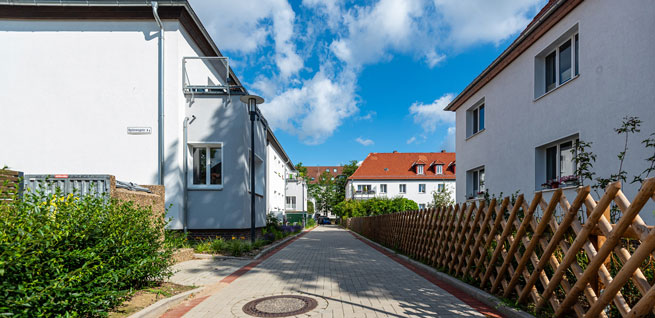 Die Richterstraße und Spitzwegstraße liegen in einer beliebten und lebendigen Wohngegend mit historischen Gebäuden und altem Baumbestand entlang der Straßenzüge. Der Gebäudebestand stammt aus den 30er Jahren. 2010 bis 2013 wurden die Dächer und Fassaden saniert. Die zweigeschossigen Gebäude umfassen einen Außenbereich, der 2022 unter intensiver Einbeziehung der Mieter*innen gestaltet wurde. Insgesamt handelt es sich um 40 Wohneinheiten, davon haben zehn mehr als vier Zimmer. Die restlichen Wohnungen haben zwei bis vier Zimmer. In ihnen sind Familien mit Kindern, Rentner*innen, junge Paare und Alleinstehende zuhause. Die bunte Mieterstruktur und die lebendigen Hausgemeinschaften tragen zu einer guten Nachbarschaft bei.