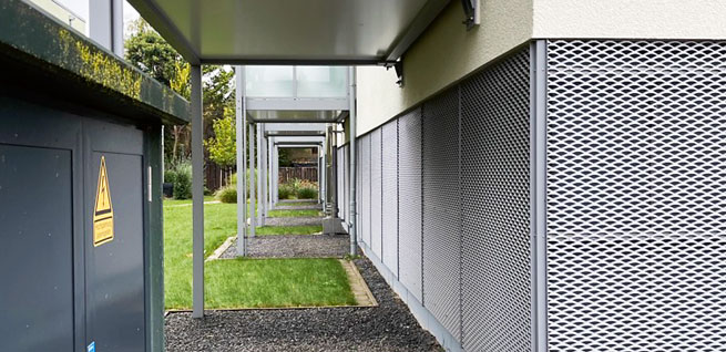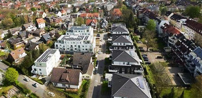 Die drei Gebäude liegen in einem beliebten Wohngebiet in einer Sackgasse, was das Verkehrsaufkommen reduziert und Einbruchsversuche unattraktiver macht. Einrichtungen des Gemeinbedarfs wie Kindergärten, Schulen, Spielplätze, Sporteinrichtungen, Praxen und Einkaufsmöglichkeiten sowie eine Haltestelle des ÖPNV und weitere Infrastruktur befinden sich in der Nähe. In zwei Gebäuden sind ebenerdig Garagen untergebracht, in der Etage darüber beginnen die Wohnungen. Im Haus Blumenesch 10 gibt es zwei ebenerdige Wohnungen. Haus 10 benutzt die Garage des benachbarten Gebäudes mit. Es gibt einen zusätzlichen rückwärtigen und nachts beleuchteten Weg von Haus 10 zur Garage in Haus 6b. Die Ausleuchtung der Wege zu den Hauseingängen und ebenso der Garagen wird über Bewegungsmelder gesteuert. Das Grundstück ist eindeutig und sicher vom Verkehr abgetrennt. Ein Übersichtsplan mit den drei Adressen an prominenter Stelle hilft Besucher*innen und Einsatzkräften sich schnell zu orientieren. Alle Hauseingänge sind transparent gestaltet und barrierefrei. Im Hausflur hängen Schilder mit Ansprechpartner*innen aus. Neben den Aufzügen und an den Zwischentüren zu den Wohnungen sind zur besseren Orientierung die Geschosse nochmals angezeigt. Die Terrassentüren der beiden Erdgeschosswohnungen sind von innen abschließbar. Sämtliche Fenster, Balkon- und Terrassentüren sind mit Außenjalousien ausgestattet, wodurch ein einheitliches Bild und ein höherer Einbruchschutz entstehen. Außer im Fahrradabstellhäuschen draußen, gibt es auch am Haus die Möglichkeit Fahrräder abzustellen. Im Waschmaschinenraum sind für jede einzelne Wohnung abschließbare Steckdosen für Waschmaschinen und Trockner installiert. Die Müllcontainer sind in einer verschließbaren Abstellbox untergebracht. Ein externer Anbieter sortiert den Müll aus den Containern noch einmal nach. Eine Wärmepumpe im Hof sowie Photovoltaik-Pannels auf den Dächern gehören zum Energiekonzept der drei Gebäude. Die WGO bemüht sich generell um ein mit dem städtischen Anbieter abgestimmtes Konzept für eine möglichst günstige und sichere Energieversorgung ihres Bestandes.